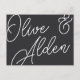 Diseñada para coincidir con nuestras invitaciones de boda en Guión Sobredimensionado en Blanco y Negro, esta elegante tarjeta postal RSVP basada en tipografía es perfecta para RSVPs de correo tradicional. Personalice con la fecha deseada de RSVP y el personalizado acepte y rechace la redacción de las letras clásicas de serif alineadas en la parte inferior derecha. Nuestra colorida ceniza hace una declaración clásica con letras negras suaves sobre un fondo blanco y nítido.