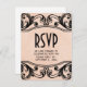 Elegante y moda Vintage Swirls RSVP Postcard con un fondo naranja de coral falsamente texturado y bordes giratorios florecientes. Este diseño de estilo antiguo es perfecto para un boda de temática vintage. Fácil de personalizar, simplemente agregue los detalles de su boda en los campos de texto proporcionados. Haga clic en "Personalizar" para encontrar más opciones de personalización.