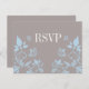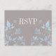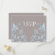Postcarta de respuesta Boda floral de mariposa dulce y delgada con un fondo gris turbio y turbio, mariposas azul claro y adornos de vid floral. Esta elegante postal de boda RSVP es la elección perfecta para un boda moderno y de moda. Fácil de personalizar, simplemente agregue los detalles de su día de boda en los campos de texto proporcionados. Haga clic en el botón "Personalizar" para encontrar opciones de personalización adicionales.
