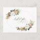 Tarjeta postal de respuesta con marco floral inspirado en vintage elegante. Estilo de diseño de tipografía beige elegante.