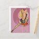 Postal Rubia sobre la herramienta mirando hacia atrás cla