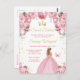 Esta elegante y glamurosa invitación de cumpleaños para dulces dieciséis presenta a una hermosa princesa con cabello rubio en un vestido de baile rosa. El texto combina la escritura a mano y las fuentes modernas sans serif para un aspecto clásico y sofisticado. Los arreglos florales, la mariposa y el confeti dorado crean la mezcla perfecta de rústico y chic.