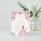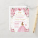 Esta elegante y glamurosa invitación de cumpleaños para sweet sixteen presenta a una bella princesa con cabello rubio en un vestido de baile rosa. El texto combina letra manuscrita y fuentes sans serif modernas para un look clásico y sofisticado. Los arreglos florales, la mariposa y el confeti dorado crean la mezcla perfecta de rústico y chic.