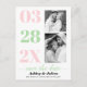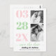 Foto de dos colores rosa y verde menta de Rubor Guardar la postal de la fecha. Muestra la fecha en tipografía rosa y verde menta en una columna y dos fotos de la pareja. La frase "Guardar la fecha" está en tipografía de estilo de script.