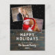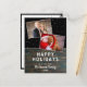 Postal de foto del Rustic Dark Wood Snow Holiday 2. Moderna postal de Navidades vacacionales con textura de madera oscura y color de fondo negro con nevada. El diseño tiene un guión blanco moderno - personalizar cualquier texto. La postal tiene 2 collage de fotos - inserte sus fotos en la plantilla. En el reverso hay una plantilla para la dirección del remitente. Celebra las festividades con esta tarjeta postal de Navidades de moda.