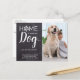 Home is Where The Dog Is ... and the dog moved! Let your best friend announce your move with this cute and funny custom pet photo dog moving announcement card in a rustic chalkboard slate design with paw print.