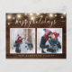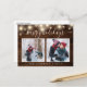 Felices vacaciones de fondo rústico de madera con fondo de luces de cuerda que se pueden personalizar con 2 postales de fotos.