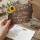 Postal Rustic Wood Sunflower String Luces salva la fecha