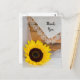 Personalizar de la encantadora Boda Rural Rústica Yellow Sunflower and Lace Country Wedding Gracias Postcard con su propio mensaje personal de agradecimiento, gratitud y aprecio después de su informal pero elegante granja rural, fiesta de granero, rancho o ducha de novia occidental, fiesta de compromiso o tema del matrimonio. Esta postal informal y elegante personalizado de agradecimiento presenta una pintoresca fotografía floral de una flor de girasol amarilla, un velo nupcial blanco y un pañuelo de lino blanco con fondo de madera marrón templado.