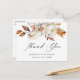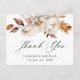 Boda floral rústico gracias a tu postal con flores de cascada y follaje en tonos marfil, crema, marrón y naranja de óxido. El elegante diseño floral de otoño se complementa con el "gracias" mostrado en un guión moderno de caligrafía. Personalice la parte delantera del boda gracias postal con sus nombres y fecha de boda. La parte posterior de la tarjeta postal muestra la dirección de retorno y el mensaje de personalizado. El boda floral de otoño gracias postcard es perfecto para su boda o evento especial. Diseñado para coordinar con nuestra colección Rustic Autumn Floral boda.