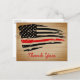 Tarjeta de agradecimiento de la delgada línea roja - bandera estadounidense con colores de bandera de bomberos, diseño angustiado . Este agradecimiento de los bomberos es perfecto para agradecer a un bombero, o a los departamentos de bomberos. DERECHOS RESERVADOS © 2020 Judy Burrows, Black Dog Art - Todos los derechos reservados. Disparador Rústico de Línea Roja Gracias Postcard