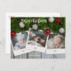 Crea tu propia y elegante postal rústica de vacaciones con este bonito diseño con madera de granja gris como fondo para tus fotos favoritas de la familia y tus saludos personalizados, enmarcados con pinos verdes y adornos rojos y plateados. Feliz Navidad con un guión elegante escrito a mano y tu nombre familiar con una letra rústica y simple. Las tres fotos de la instantánea están firmadas: amor, alegría, paz. El reverso de la postal también contiene su mensaje y dirección personalizados.