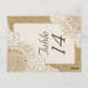 Postal Rústico encaje blanco en burlap número de tabla bo
