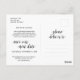 Este es el moderno diseño minimalista simple y limpio con el tema, en el tipo de letra Negro, invitación a fiesta de boda Postcard reprogramado (pospuesto / pospuesto) (un giro en los planes) . Es la manera perfecta y elegante de hacer la invitación reprogramada a sus amigos y familiares.