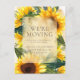 Hermosos girasoles de color amarillo y marrón y hojas verdes en un personalizado de acuarela rústico Cambio de dirección/postal de invitación móvil.