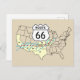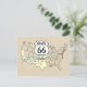 Una postal de la histórica Ruta 66 con un mapa que muestra su camino a través de Estados Unidos.