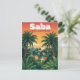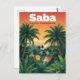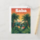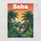 Escapa a la joya escondida del Caribe con esta postal de estilo vintage. La obra de arte presenta el exuberante paisaje montañoso de Saba, destacando sus coloridas casas estilo pan de jengibre y densa vegetación tropical contra una puesta de sol vibrante. El diseño retro captura el encanto único de la isla y es perfecto para un recuerdo, una nota para un amigo o una hermosa pieza de arte para tu hogar.