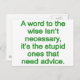 Una palabra a los sabios no es necesaria, son los estúpidos los que necesitan consejo.