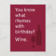 Postal ¿Sabes qué rimas con el cumpleaños? Para vino