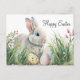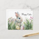 Envíe saludos cálidos de Pascua con nuestra encantadora postal acuarela que cuenta con un delicioso conejo escondido en un exuberante entorno rodeado de coloridos huevos de Pascua. El diseño capta la alegría y el espíritu de la temporada. Perfecto para extender el amor y la alegría a la familia y amigos. Comparte la magia de Pascua con esta postal hecha con gusto.
