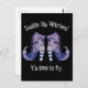Unas botas de bruja púrpura de acuarela caprichoso decoradas para Halloween con texto de personalizable sobre fondo negro
