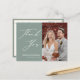 Sage Green Elegant Script Modern Photo Minimalista Boda Gracias Postcard. Exprese lo agradecidos que están con sus amigos y familiares que hicieron de su boda un especial extra con esta hermosa tarjeta de agradecimiento de boda. Todos los textos están preorganizados para que puedas personalizarlos fácil y rápidamente con tus propias palabras.