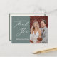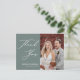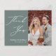 Sage Green Elegant Script Modern Photo Minimalista Boda Gracias Postcard. Exprese lo agradecidos que están con sus amigos y familiares que hicieron de su boda un especial extra con esta hermosa tarjeta de agradecimiento de boda. Todos los textos están preorganizados para que puedas personalizarlos fácil y rápidamente con tus propias palabras.
