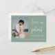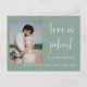 Esta tarjeta postal de invitación a la invitación para el retiro boda presenta una caligrafía elegante y un tipo de letra simple de tipografía sans serif con una foto en un fondo verde sabio para un limpio aspecto minimalista y moderno, lo que es una hermosa manera de informar sobre tu próximo boda. La sencillez de este diseño le da un toque de elegancia a sus tarjetas de invitación boda. Funciona bien con muchos temas bodas y sin duda una gran adición a su boda. Solo personalizar los nombres y la redacción en unos pocos pasos fáciles y personaliza la postal de invitación con tu foto de la pareja feliz para darle a tu postal un agradable toque personal. Nota: La elegante caligrafía de la frase "El amor es paciente pero no lo somos" y "nada de fantasía solo amor" junto con las líneas y otras obras de arte y elementos gráficos no pueden editarse, eliminarse ni moverse. Están arreglados.