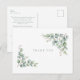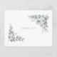 Funeral, bereavement thank you card. Family name and thanks on the back. Personalized funeral thank you. Loss of life. Eucalyptus. Greenery. Simple. Sage Text. Postcard.