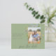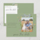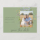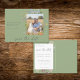 Share your joy with this sage green wildflower garden elegant wedding photo save the date postcard, featuring soft dusty sage green watercolor borders and delicate blue, pink and yellow florals. Perfect for a romantic garden, spring or summer wedding, this beautiful design sets a whimsical and sophisticated tone for your special day. Fully customizable and a lovely keepsake. Created by Simply Farmhouse Press.