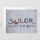 "Marinero - ¡Conozco las cuerdas!" La "A" en "Sailor" es un pequeño barco de vela colorido, un regalo perfecto para los marineros y los amantes del barco.