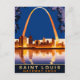 Poster de San Luis. Arco de puerta de enlace sobre la ciudad. Reflexiones de agua. Postal de viaje en colores brillantes y fondo azul.