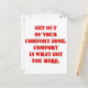Para la mayoría...la comodidad es lo que nos trajo aquí. Confortable reclinador, comida de confort, ropa cómoda y holgada. Así que, sal de tu zona de confort...hacer el trabajo...¡regresa al verdadero tú!