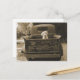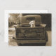 Sal de Dodge por Jim Dratfield. Esta fotografía sepia es de un perro lindo sentado felizmente en la parte trasera de una camioneta.