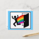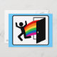 Inspirado por una señal de advertencia de salida de fuego, este divertido diseño del orgullo gay ilustra una figura que sale de un armario en un arrebato de arcos.