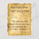 Una hermosa postal, impresa en un fondo bíblico de la antigua carta, con Salmo 92:12 en hebreo (el idioma original de los salmos) e inglés (King James Version). Un bonito recuerdo para cada amante de la biblia.