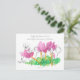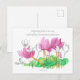 Una postal que puede utilizarse como una tarjeta de oración con una escritura de los salmos 37:4 y decorada con flores de ciclamen rosa florecientes de bonito dibujadas con lápiz y pintadas con acuarela. Son agradables de recoger y tienen diferentes tarjetas de oración para cada día en las que reflexionar. Encuentra muchas más tarjetas de oración en mi tienda.