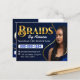 Haz una declaración majestuosa en el mundo del trenzado capilar con nuestra exquisita postal de venta al aire libre Royal Blue and Gold African Hair Braiding. Diseñada para estilistas, trenzas y salones de belleza especializados en trenzas africanas, esta postal presenta una sofisticada paleta de colores dorados y azules reales, complementada con una fascinante foto que muestra tu intrincada trabajo de trenzas.
