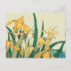 Irrises amarillos y grasshopper - Esta imagen está basada en una huella de arte antiguo de Katsushika Hokusai vintage de la década de 1820. El cuadro muestra un saltamontes en un jardín de flores de iris amarillas. Arte gráfico de diseño asiático japonés.