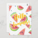 Celebra esta temporada con una vibrante postal. Esta tarjeta presenta un patrón de sandía con texto moderno.