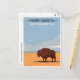 vintage, retro, travel, moderno, acuarela, clásico, Dakota del Norte, arte publicitario, saludo de, estados unidos,