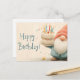 Postal Saludo de cumpleaños caprichoso: Gnomo sosteniendo