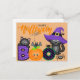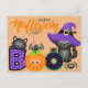 Un lindo gatito de Halloween con tarjeta postal para saludar