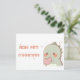 Ilustracion colorido con un simpático dinosaurio personalizado de corazón rosa. El texto "Bon Fete Manman" (Feliz Día de la Madre en el creole haitiano) está escrito en el corazón con letras blancas. El fondo es azul claro con corazones pequeños.