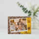 Tarjeta de vacaciones de Acción de Gracias única, elegante, moderna, bonita y decorativa. Con espacio para personalizar o personalizar con una foto y nombres (o apellido) de su elección. Con hermosas flores amarillas cálidas de otoño Mums en un diseño de fondo de cuadros escoceses inspirado en la casa de campo rústica. Y un poema de saludo de temporada personalizable en el reverso de la tarjeta.