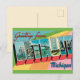 Muy colorido saludo de tarjeta postal retro Detroit, Michigan reutilizado en una nueva tarjeta postal!