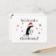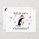 Aquí está de nuevo ese tipo fiesta, el Gato de Cabernet, con su gorra de Santa Claus y su copa de vino, esta vez un blanco en lugar de un Cabernet, ¡porque hoy todo se trata de Chardonnay (hey)! Dilo con él: ¡Saluté y un Chardonnay! Cita de vinos divertida que se escucha a menudo en fiestas de Navidades. Aquí el diseño se puede ver en una postal, con divertidos textos retro, decoraciones burdeos de estrellas, y el gato personalizado negro mismo, vestido para la temporada en un gorra rojo con un adorno blanco difuso.