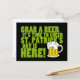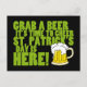 Este diseño del día de San Patricio presenta una cerveza y dice "Coge una cerveza, es hora de alentar, ¡el día de San Patricio está aquí!" Es sencillo personalizar esto y añadir tu propio texto o imágenes haciendo clic en el botón "Personalizar".