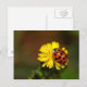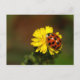 Un escarabajo asiático de mariquita sentado en una flor amarilla es un espectáculo alegre y hace de una linda tarjeta de saludo.