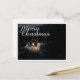 La carta muestra una escena evocadora y empinada con una pequeña cabaña de madera iluminada en medio de un bosque cubierto de nieve. La fuente de luz del interior crea un bonito contraste con el entorno oscuro y tranquilo. La elegante inscripción "Feliz Navidad" en blanco le da al motivo un toque festivo. 🎄 ✨